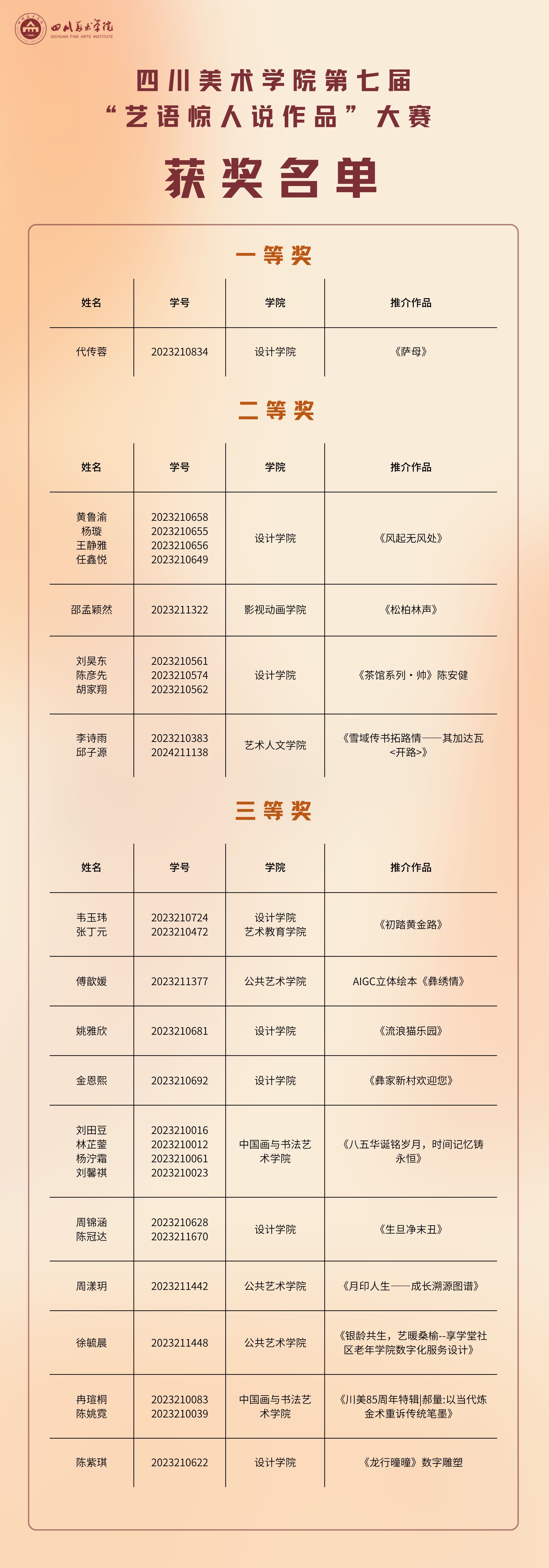 此次大赛既是川美八十五周年校庆的文化献礼,也是川美博雅智识的教育理念与艺术融合的生动实践,还是川美重庆市一流课程艺术沟通与写作课的延伸实践平台。大赛旨在提升艺术院校学生随机应变的思考能力,能言善辩的表达能力,提笔慧写的写作能力,讲好中国艺术故事的能力。川美学子以多元的艺术语言活化传统基因、锚定时代议题,让校史文脉在创新表达中焕发新生,很好地达成了比赛的目的。未来,川美通识学院将继续探索价值塑造、能力提升、知识养成三位一体的课程改革模式,以赛促教、以艺铸魂,让赛事与艺术同频共振,培养出契合时代发展需要的艺术英才!