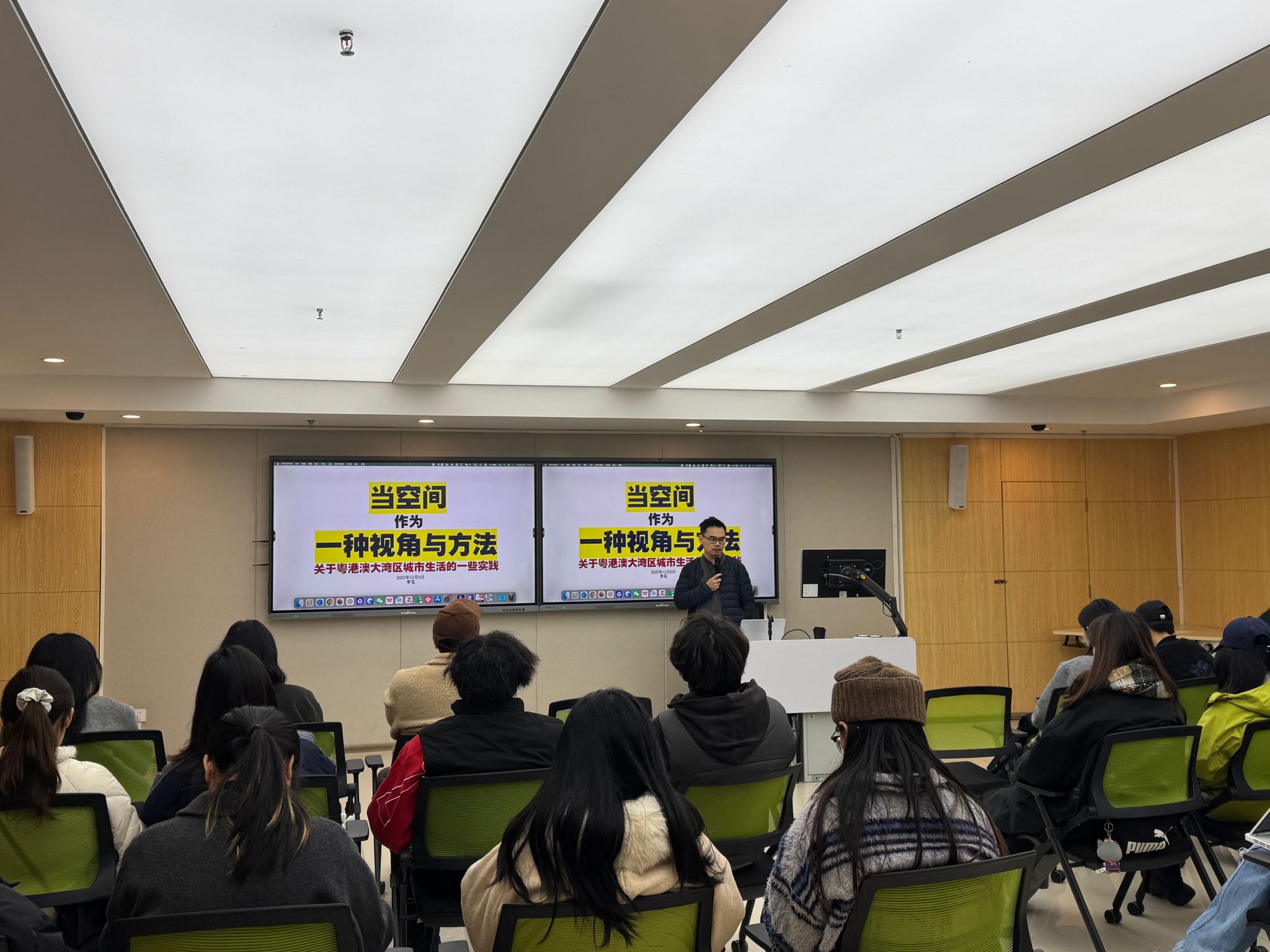 公共艺术学院在黄桷坪校区 103 会议室举办 “艺术・空间・城市” 系列学术讲座第五讲 “当空间作为一种视角与方法 —— 关于粤港澳大湾区城市生活的一些实践”,邀请广州美术学院建筑艺术设计学院副教授、科研创作部副部长李芃主讲。