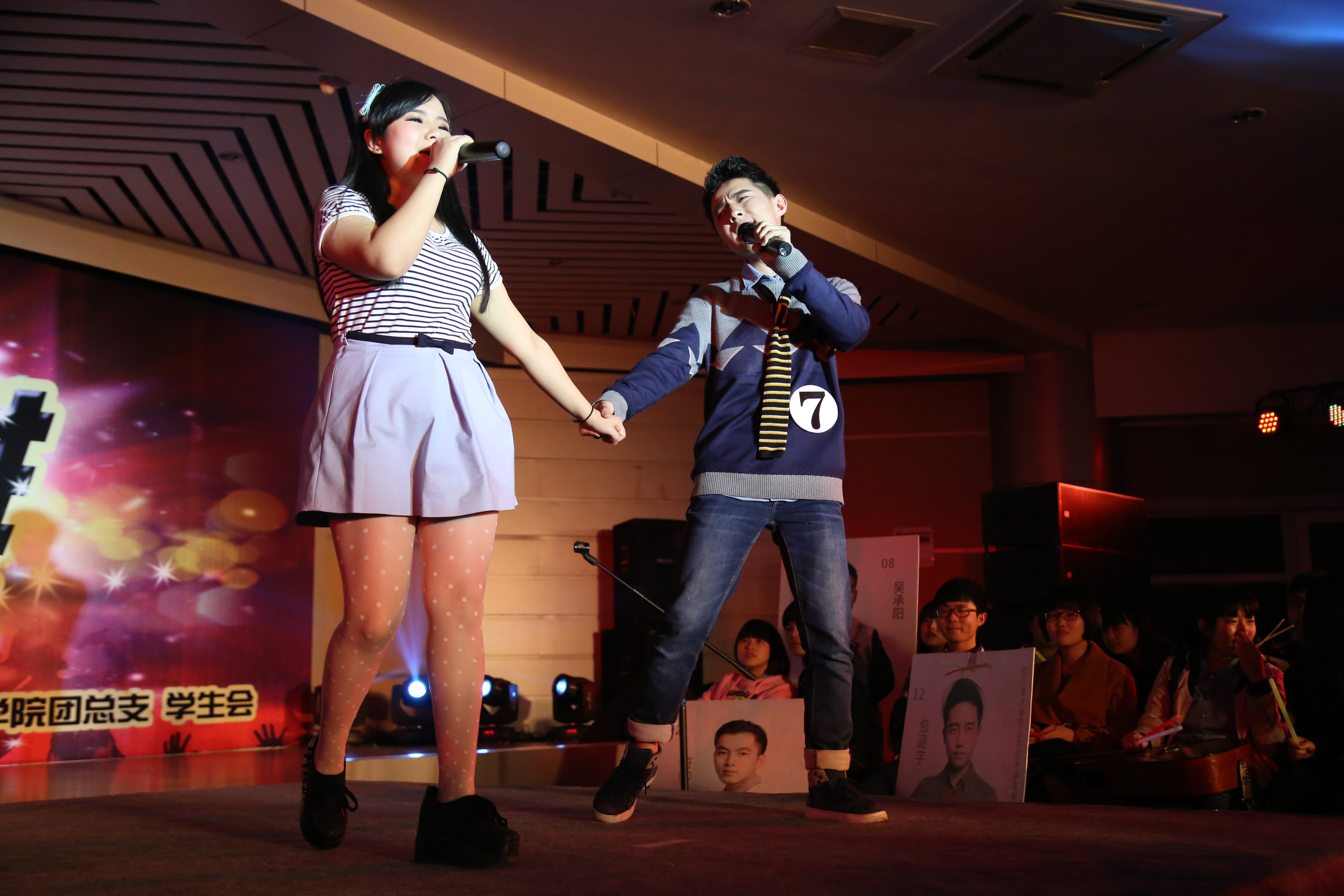 当晚共有来自我院2012、2013级的12名选手进行角逐。歌手们个个唱功非凡、竞争激烈,场下观众们热情似火,为喜爱的选手加油助威。比赛共分三轮进行,第一轮淘汰战,每4人一组演唱指定曲目,考察选手在组合中的协作性;第二轮两两PK战,考验选手的稳定发挥;第三轮冠亚军争夺战,演唱自选曲目由大众评审投票选出三甲选手。选手们把握每一轮展示机会,高歌低吟、自弹自唱、歌舞相伴,精彩的表演让观众大呼过瘾。经过两个小时激烈比拼,最终由吴承阳、包涵宇、薛缘同学分别夺得冠亚季军,啤酒汤圆组合获得最佳人气奖。