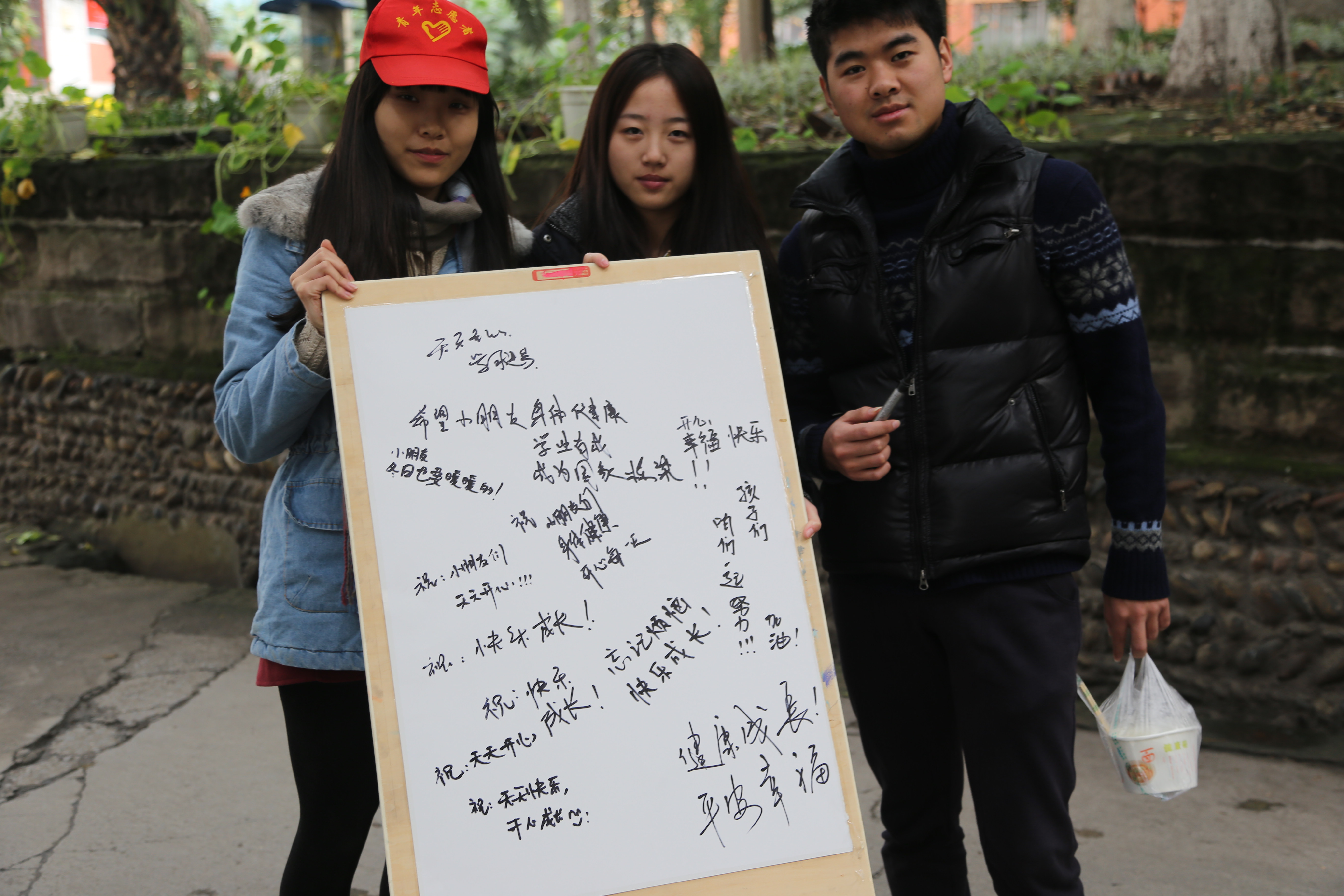 12月的重庆已露出丝丝寒意,但参与的同学们热情高涨,募捐现场都是志愿者们整理衣物、书写祝福语、推广介绍活动的忙碌身影。募捐得到了全院师生的积极响应,共整理出6箱衣物寄往捐赠学校。