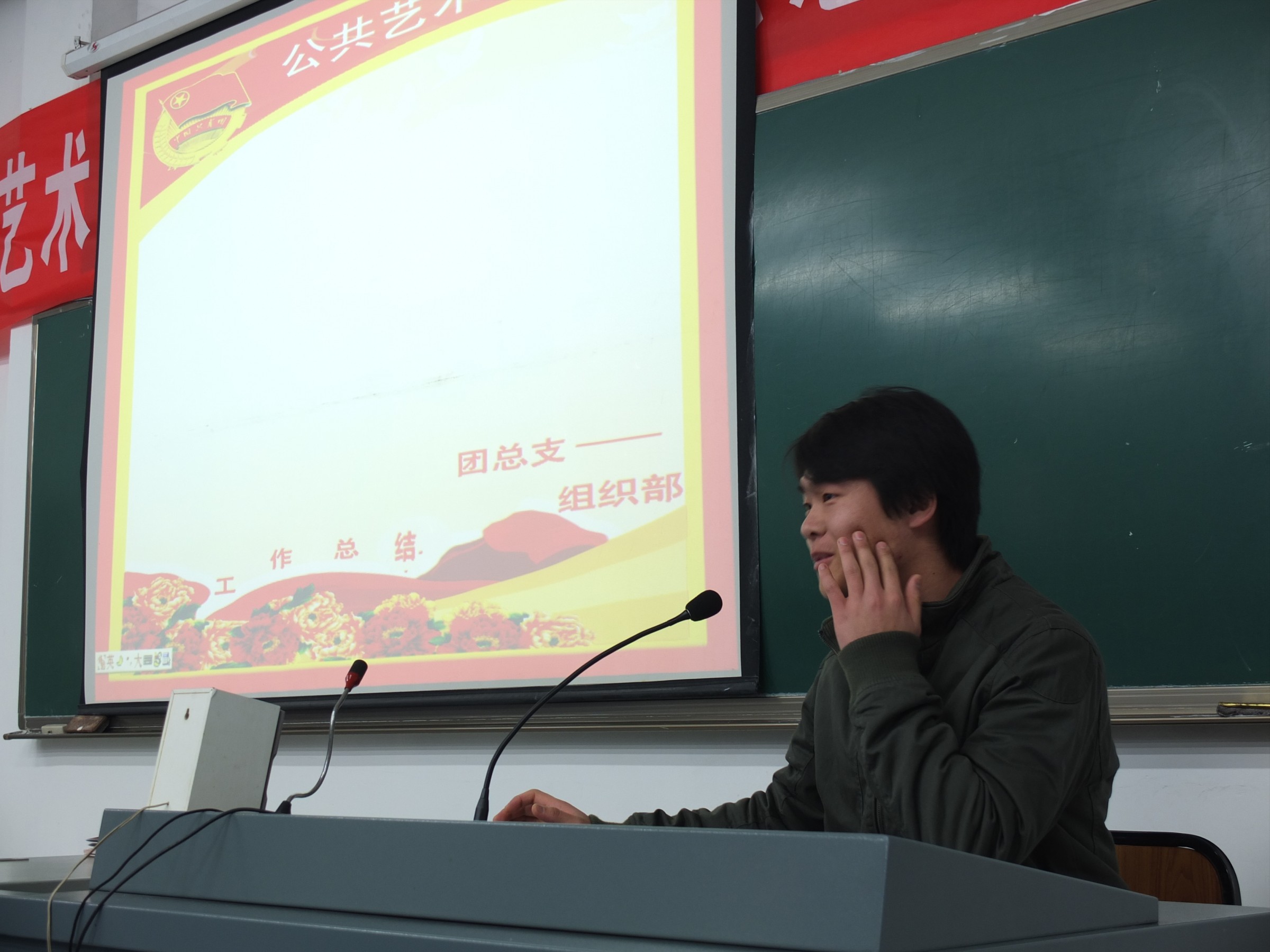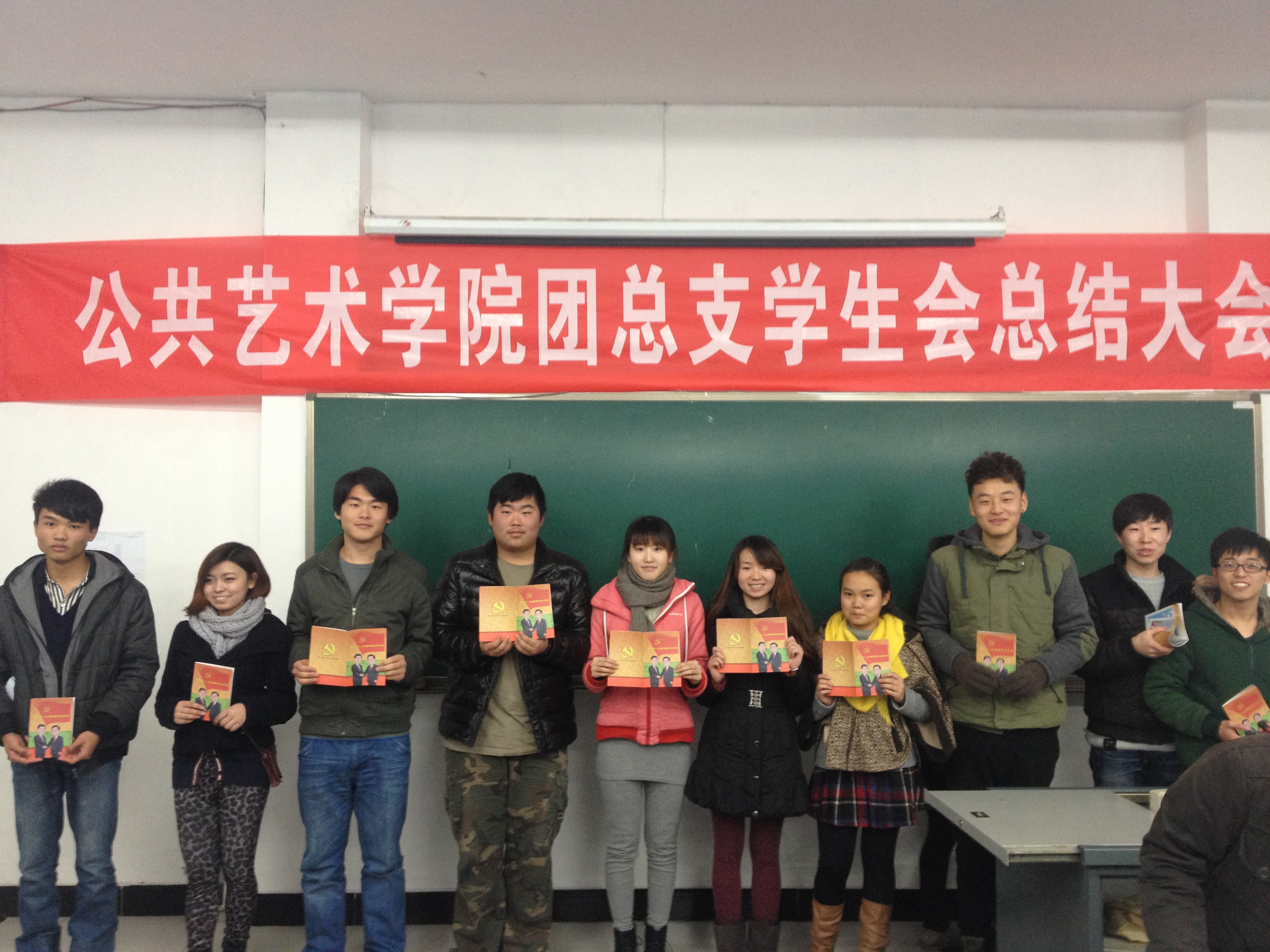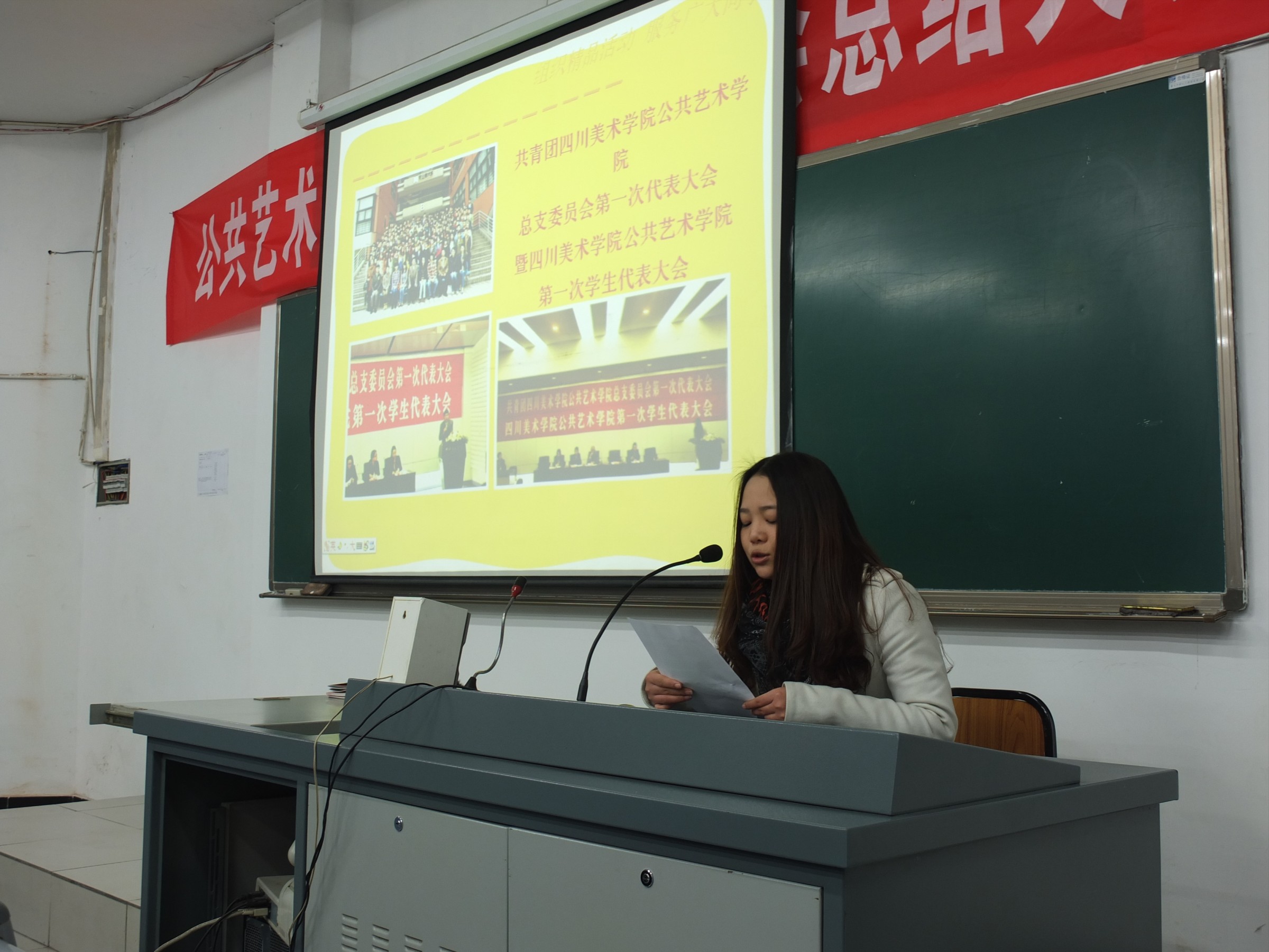 1月11日下午3:30,公共艺术学院团总支学生会总结大会在黄桷坪校区公共课14教室召开。学院全体党政领导詹培民、沈渝德、谢鸣理、秦谊、黄山出席了大会,全院59名学生干部参加,会议由团总支书记胡经菁主持。