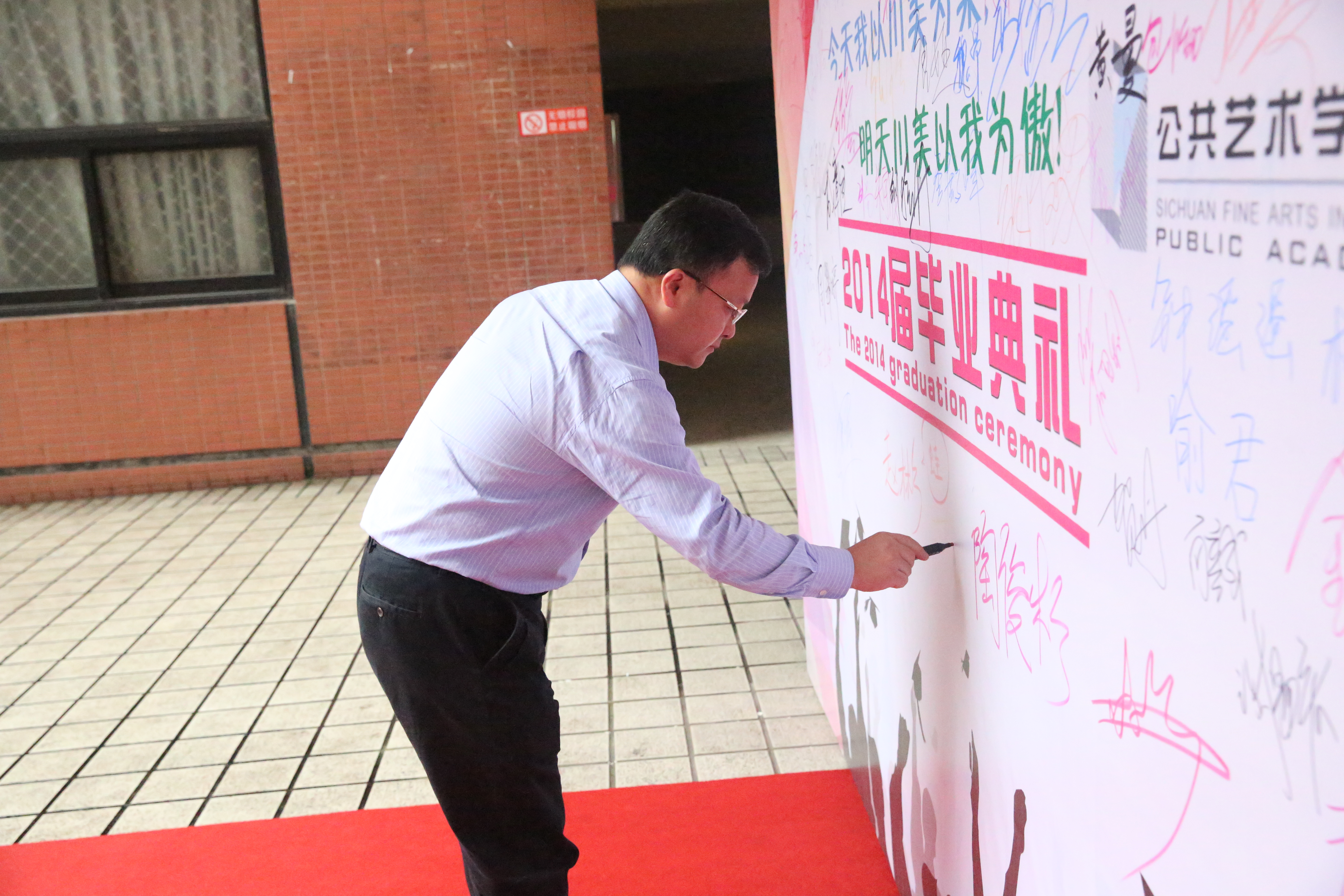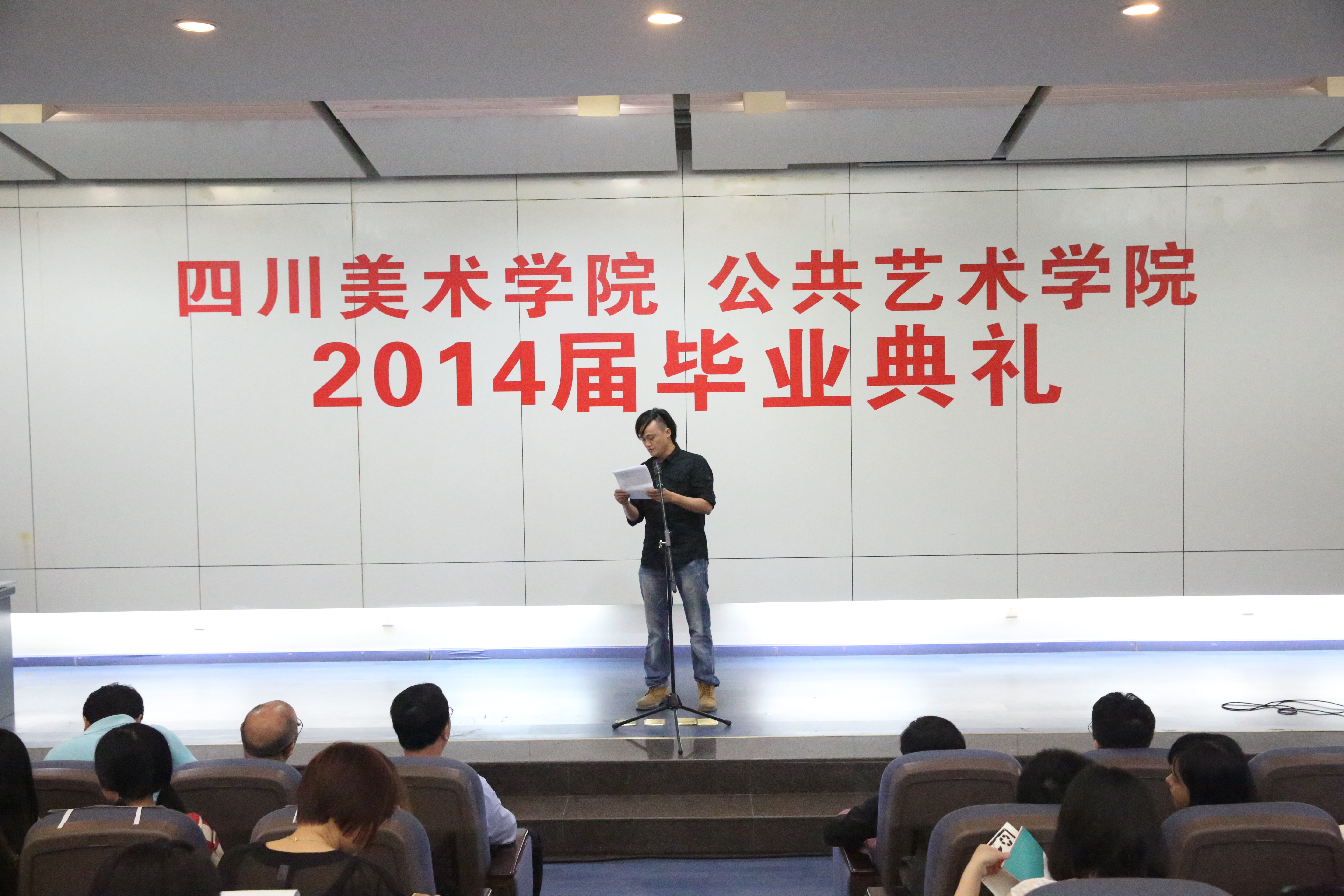 公共艺术学院2014届毕业典礼在黄桷坪校区学术报告厅举行。校党委副书记左益、公共艺术学院党政领导沈渝德、黄山、秦谊和教师们参加了典礼,由秦谊副书记主持。