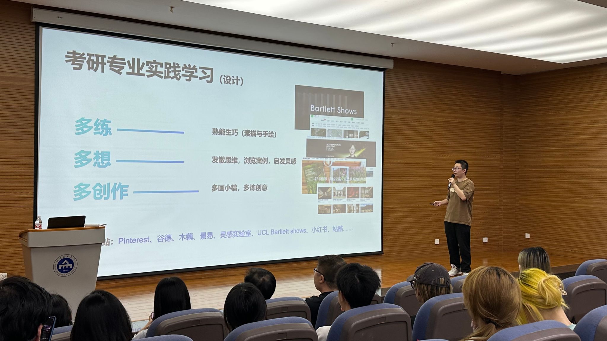 6月12日,公共艺术学院在黄桷坪校区学术报告厅举办“榜样力量 追光前行”学业规划与就业指导活动系列之考研考博经验分享会。学院党委副书记、纪委书记张坤,全体辅导员以及本硕学生代表参加,考取江南大学博士研究生的2025届毕业生邱孟柏、考取中国美术学院博士研究生的2025届毕业生裴国栋分别作学习经验分享。