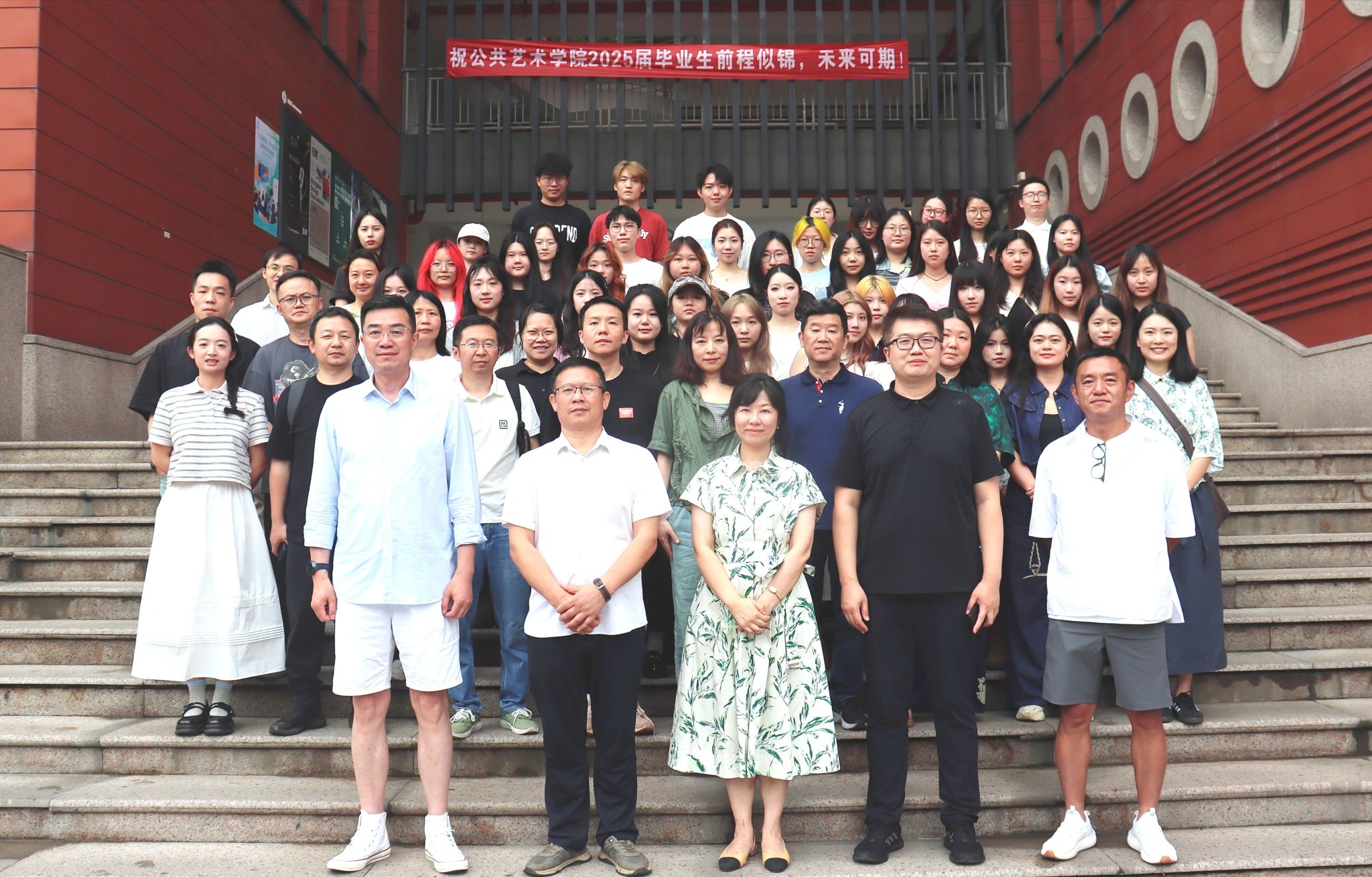 雍朝永作总结发言。他深情回顾2025届毕业生的求学之路,希望同学们立足当下、让艺术在时代的浪潮中焕发新的生机与活力,做新时代的艺术“筑梦者”。座谈会在愉快的氛围中落幕,与会师生在黄桷坪校区综合楼合影留念。