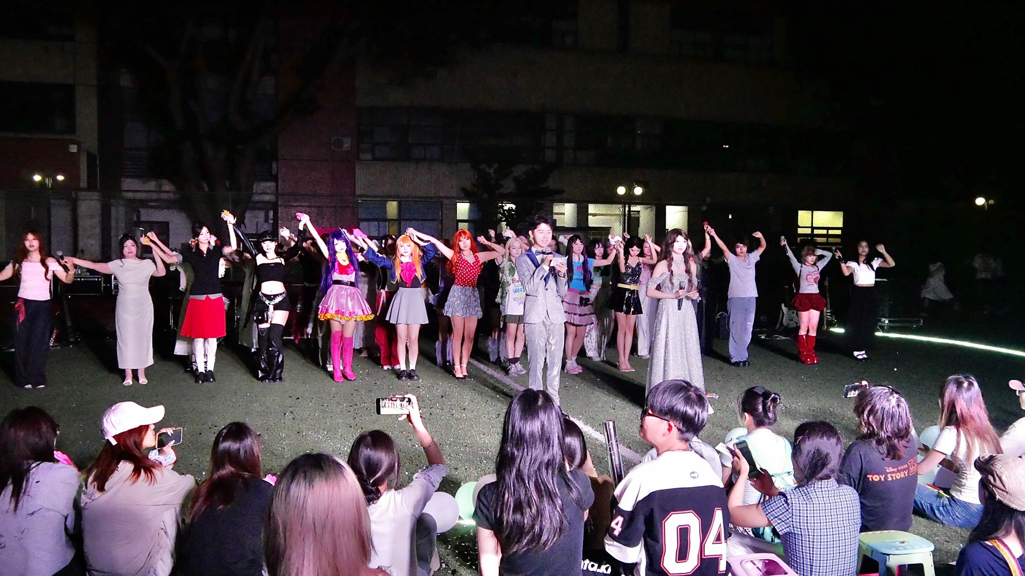 当晚19时整,毕业晚会准时启幕,黄桷坪校区操场化作青春舞台,开启了精彩纷呈的节目表演,动感舞蹈《LEFT RIGHT》用热情点燃全场,歌曲《歌颂者》用深情歌声诉说青春故事;小品《我今晚一定睡觉》融合表演与创意,朗诵《青春扬帆正当时,争做时代追梦人》传递告别与祝福,中场抽奖环节欢呼声不断,精美好礼被幸运儿收入囊中,青春喜悦在中奖瞬间尽情绽放,将氛围推向高潮,最后全体演职人员以《我的未来式》合唱为晚会画上温馨的句点,歌声里满是对未来的期许与对校园的不舍。