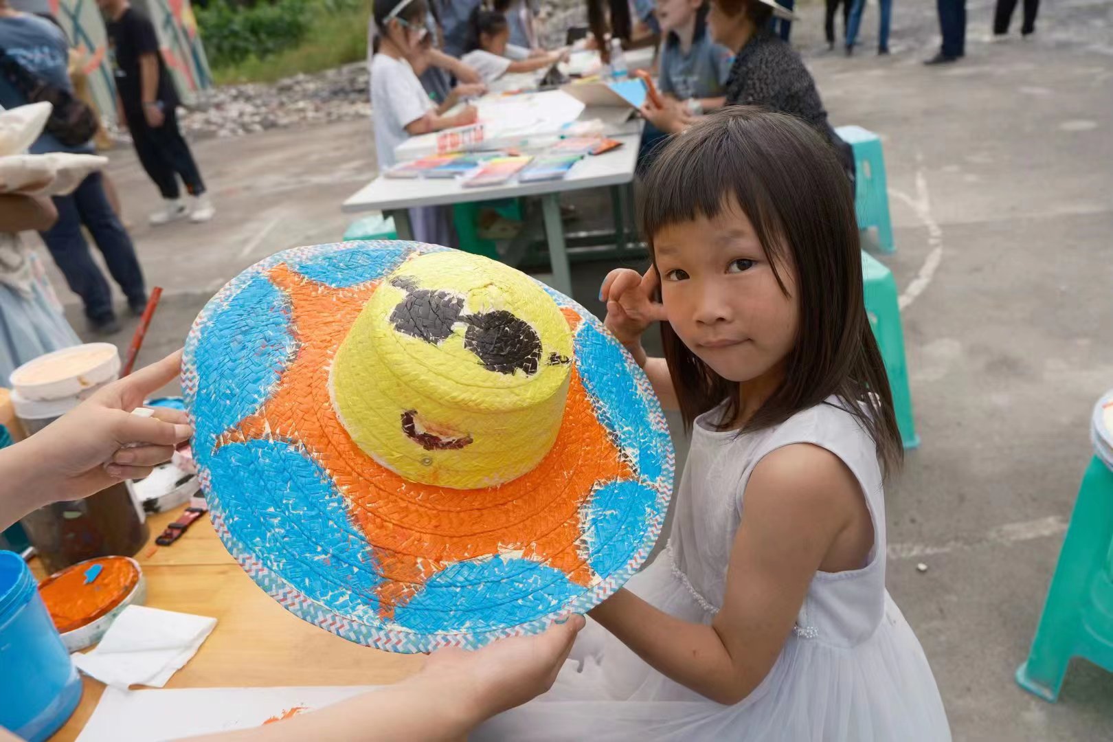 服务团还为清水村的小朋友们开展了“彩绘草帽”和“童心向党——主题绘画”乡村美育实践活动。在此次活动中最引人注目的是“两老一少”组,年过八旬的老党员兄弟俩带着8岁的曾孙女徒步1小时前来参与活动,活动中充满其乐融融的幸福。同时,活动也为当地村民们带来了满满的获得感与幸福感。