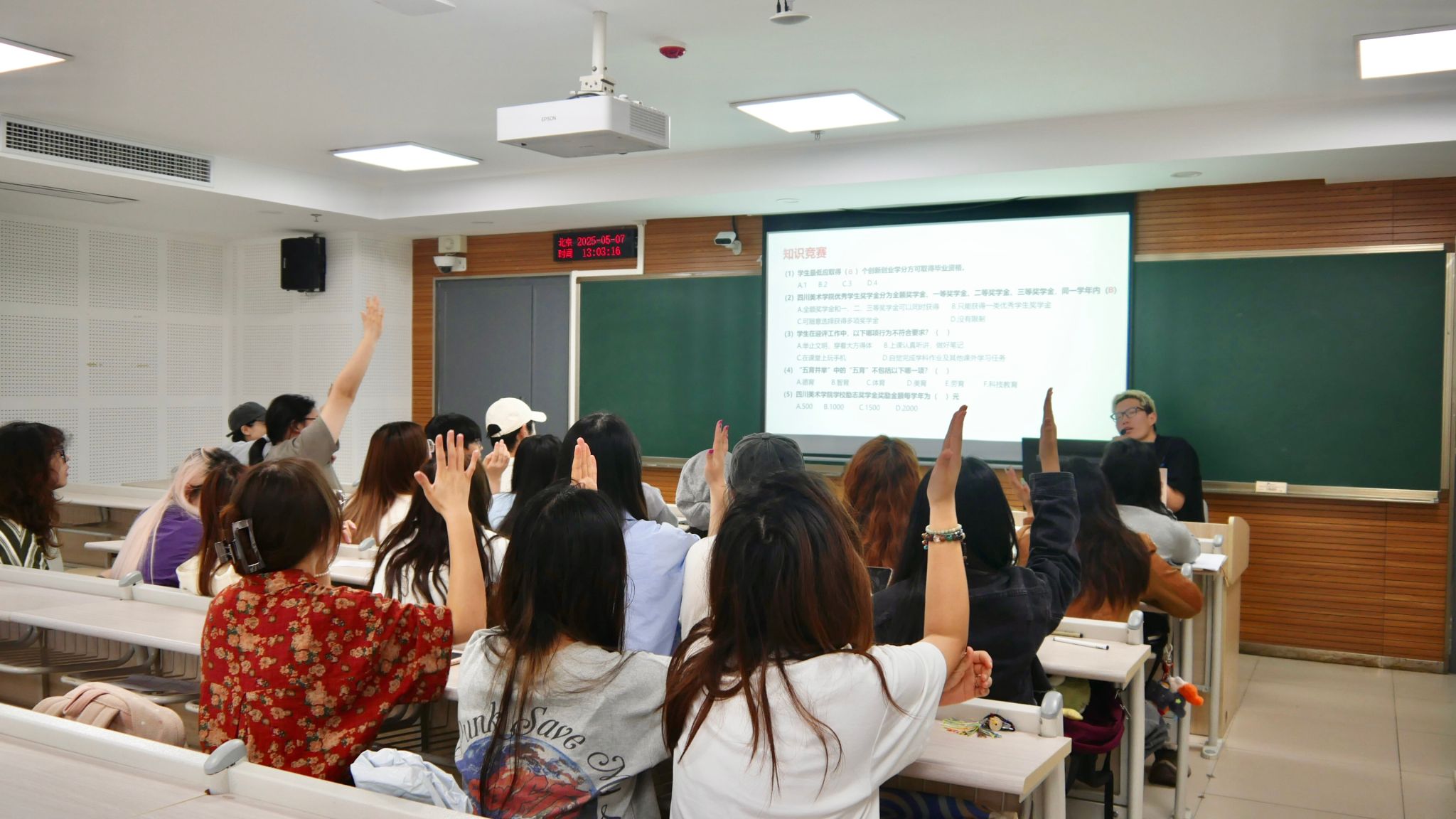 会议着重强调了学风建设在学院发展中的重要性。会议指出,学风示范志愿者们作为学风建设的‘排头兵’,要主动亮身份、树标杆,以‘头雁效应’激发‘群雁活力’,当前正值学校迎接本科教育教学审核评估的关键阶段,全体志愿者需以高度的责任感积极参与学校的迎评工作,将个人示范转化为群体效应,助力学校高质量完成评估任务。