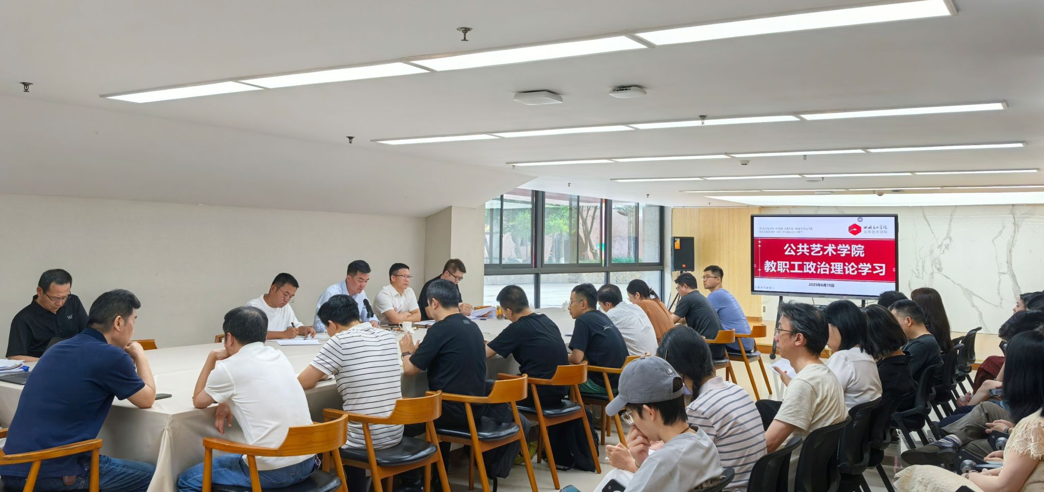 为进一步强化理论武装、深化作风建设,筑牢拒腐防变思想防线,2025年6月18日下午,公共艺术学院在黄桷坪校区四会议室召开全体教职工政治理论学习会暨警示教育大会。学院全体教职工及领导班子成员与会,学院党委书记雍朝永主持会议。会议通过系统学习、案例警示与重点工作部署,着力推动学习教育和整治工作落地落实、见行见效。