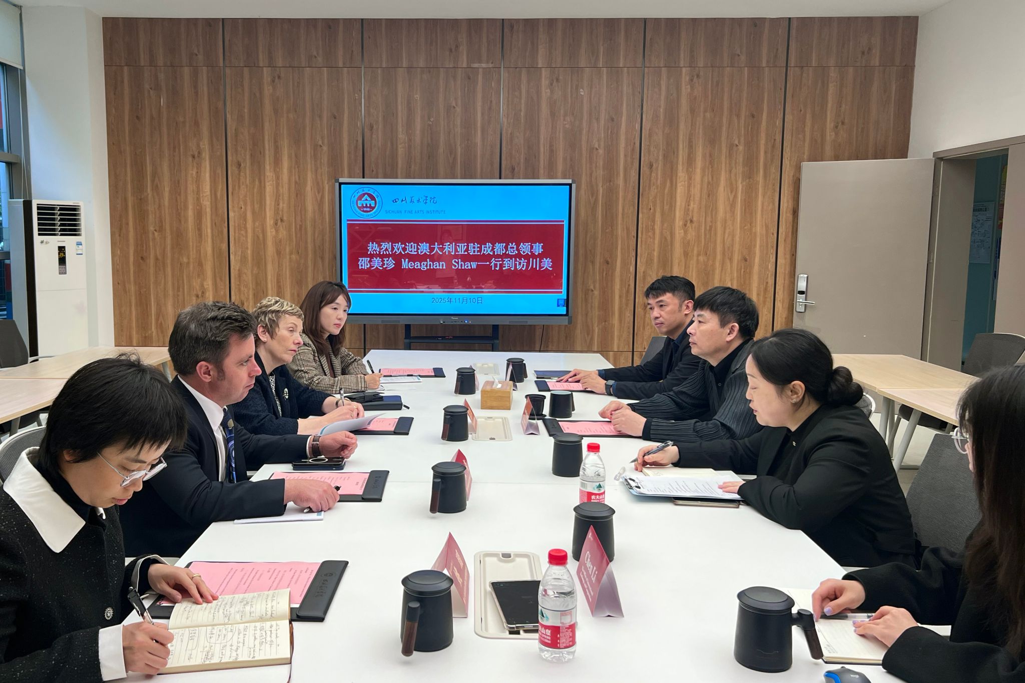 11月10日下午,澳大利亚驻成都总领事邵美珍一行到访我校。学校党委常委、副院长段胜峰接待来访,国际交流与合作处负责人陪同。双方围绕深化艺术教育合作、促进中澳文化交流等展开深入探讨。