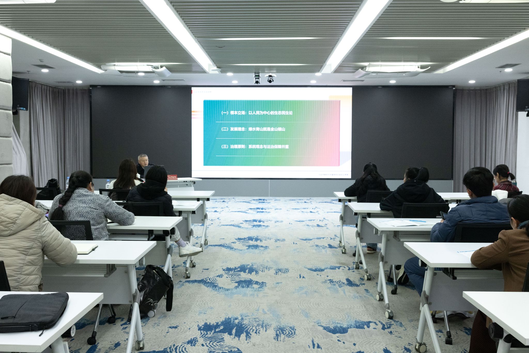 唐青阳以“习近平生态文明思想引领人与自然和谐共生的现代化”为主题,向老挝学员系统阐释了习近平生态文明思想的理论精髓,并结合我校在绿色设计领域的实践探索,以中老生态保护合作、重庆生态治理等生动案例,展现了习近平生态文明思想的实践伟力,有效促进了中老在绿色设计与生态保护领域的理念互通,为我校与老挝相关部门的后续合作奠定了良好基础。