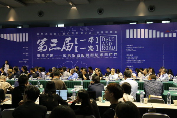 9月14日,由中国美术家协会壁画艺术委员会、 、重庆市美术家协共同主办, 中国画系、 美术馆、重庆市新媒介美术创作重点实验室、重庆市美术家协会壁画艺委会共同承办的 “第三届‘一带一路’壁画论坛-传统壁画的复制与修复研究”暨作品展在 虎溪校区美术馆举行。