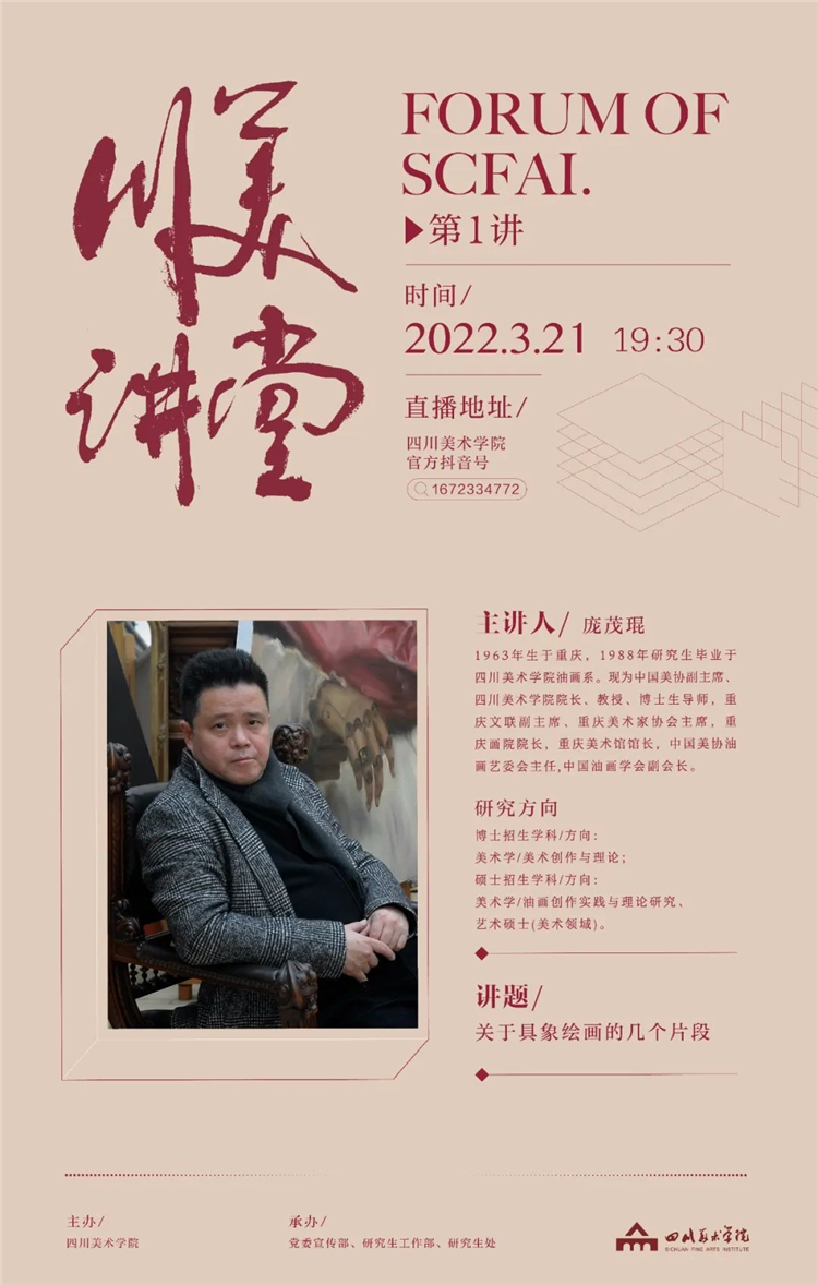 “每一讲大家都可以通过 在‘抖音’‘B站’的官方直播号看到。”负责组织、筹备本次“川美讲堂”的川美副校长焦兴涛告诉记者,从最先和大家见面的校长庞茂琨带来的讲题《关于具象绘画的几个片段》,不难看出整个“川美讲堂”的内容是带有较强学术性的,但之所以又选择了“抖音”“B站”这样的大众视频平台来直播呈现,更多是希望能在专业性和知识的普惠性方面做一些有益的尝试。