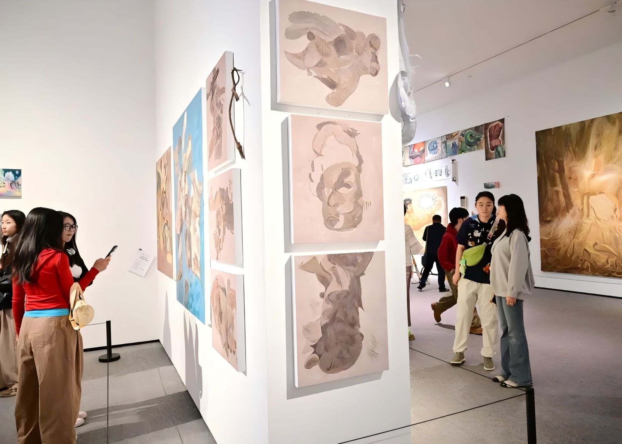 院长焦兴涛介绍,本届研究生毕业作品展围绕艺术与科技跨界融合、中华优秀传统文化的创新表达、服务社会与人文关怀三大主题,共展出川美8大学院,涵盖中国画、书法与篆刻、油画、版画、雕塑、实验艺术、设计、动画等21个专业方向400余名研究生1000余件作品,分设美术馆与虎溪公社两大展区,以多元空间为载体,全面呈现川美高层次人才培养、高水平艺术创作、高质量开放办学的最新成果。