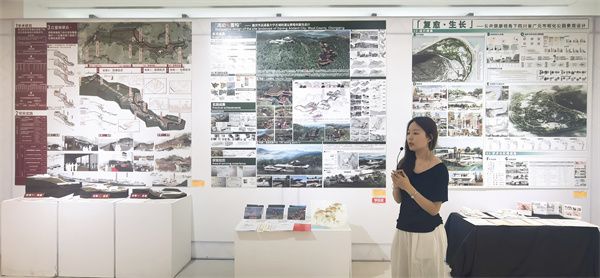 建筑与环境艺术学院风景园林专业研究生姜雅静作为优秀作品学生代表介绍,其毕业设计灵感源于对大宁古城的实地调研。作为三峡库区唯一未被淹没的千年古城,大宁古城承载着深厚历史与独特文化,但部分遗址存在衰败问题,景观功能与人文活力亟待唤醒。她以“流动与重构”为理念,通过景观修复活化,实现历史遗迹与现代生活的对话。“我也希望自己的设计能够助力当地文旅产业可持续发展、赋能乡村建设。这次的设计实践也为我今后就业提供了很好的方向参考”。