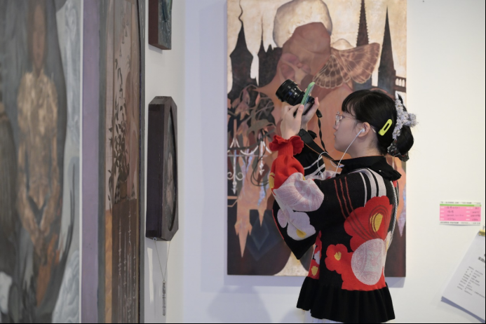 日前,以“科技与人文共生、传统与未来对话”为主题的“开放的六月” 2025研究生毕业作品展在虎溪校区启幕。展览汇聚全校8大学院21个专业方向、400余名研究生的1000余件作品,涵盖中国画、书法篆刻、油画、雕塑、实验艺术、设计等多元领域,分设美术馆与虎溪公社两大展区。