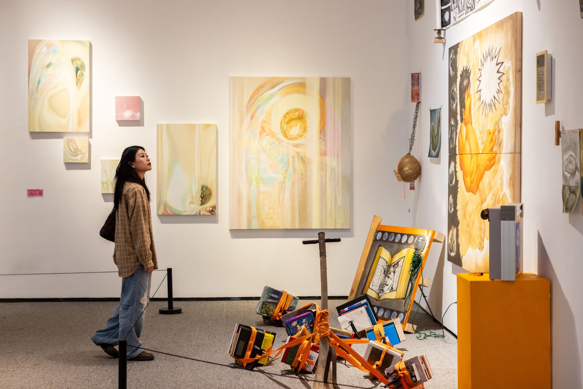 据了解,本届毕业展展出了全校8大学院,涵盖中国画、书法与篆刻、油画、版画、雕塑、实验艺术、设计、动画等21个专业方向400余名研究生的1000余件作品,分设美术馆与虎溪公社两大展区。展览将持续至5月16日,期间免费向公众开放,公众可通过 美术馆小程序预约观展。