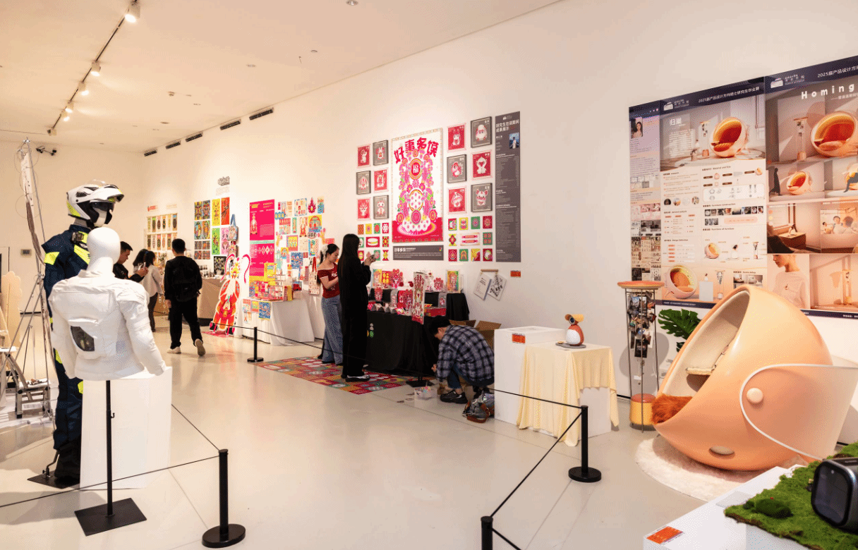 本届毕业展以“科技与人文共生、传统与未来对话”为核心脉络,作品主题涵盖绿色发展、文化传承、城市更新、乡村振兴、数智生活等国家重大战略领域,展现出川美在艺术与科技跨界融合领域的先锋探索及其成果:影视动画学院依托人工智能生成、虚拟制片等前沿技术,打造“多元创见·数智共生”的沉浸式叙事;设计学院通过“艺科融合”路径,将绿色设计、智能交互与传统智慧相结合,探索未来生活美学;实验艺术学院通过激光雕刻、数据流痕与跨媒介装置,解构技术异化下的真实与虚幻,引发对生态伦理与人类文明的深度思辨。