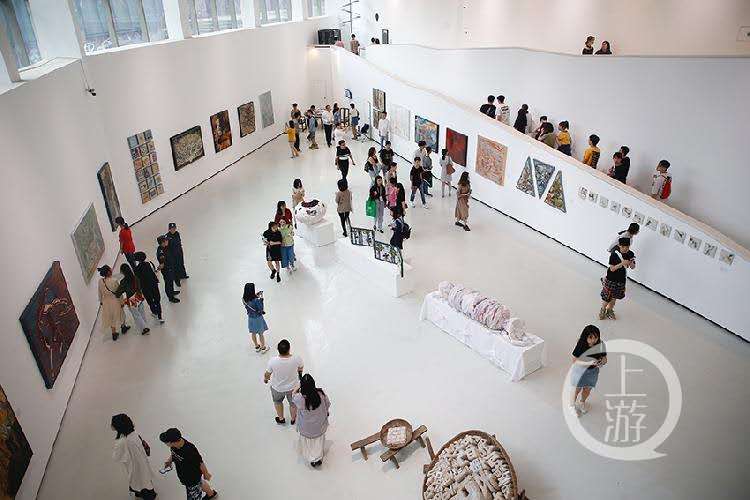 当然,观众们一定要注意观展礼仪,不要随意触摸作品,看管好自己的小孩,如果参与互动作品体验,也要小心爱护作品。每个周末和节假日,前往参观的观众都非常多,建议观众们乘坐公共交通前往。另外上游新闻·重庆晨报记者获悉,在“开放的六月”展出期间,川美美术馆每周一也将正常开放,观众们可以前往观展。