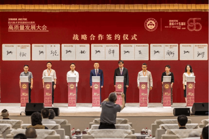 会上, 与北京大学艺术学院、重庆广播电视集团、重庆文化旅游集团有限公司、重庆新华出版集团有限公司等单位签署了战略合作协议,将在学科共建与科研协同、构建复合型创新人才培养体系、共建创新平台、携手赋能城市文化与社会美育等方面展开深度合作。