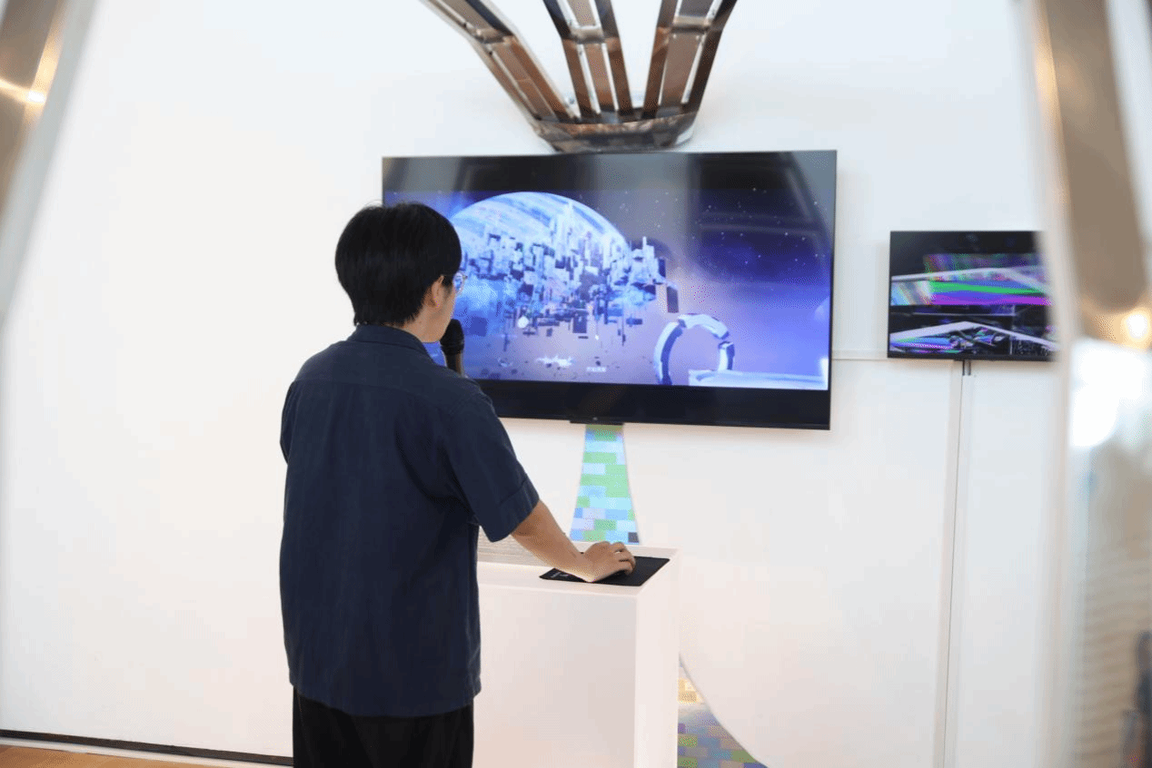 Wang Cenlin from the Experimental Art program unveiled “Fusion Tower: Alpha-Level Calculations”, merging futuristic vision with technical innovation to explore humanity's technological future. Inspired by the Tokamak device at the Chinese Academy of Sciences, he remarked, "I sought to bridge scientific grandeur with artistic expression through this systematic, immersive installation."
