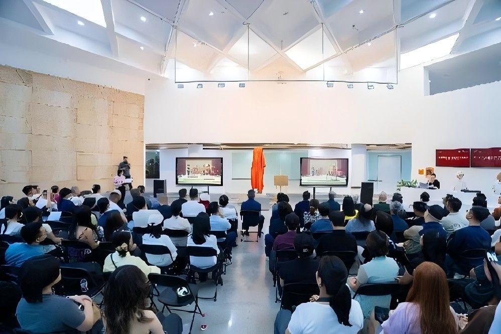 活动现场,老教授代表江碧波, 院长焦兴涛,青年教师代表尹代波以及学生代表张婷坤共同为数字复原作品启幕。
