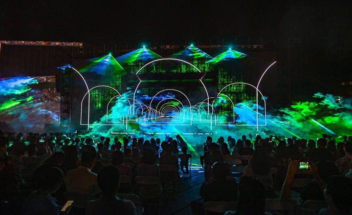 ▲5月25日晚, “开放的六月”特别活动“美术馆之夜”跨界视觉秀现场,现场正在表演精彩的灯光秀表演。记者 郑宇 摄/视觉重庆