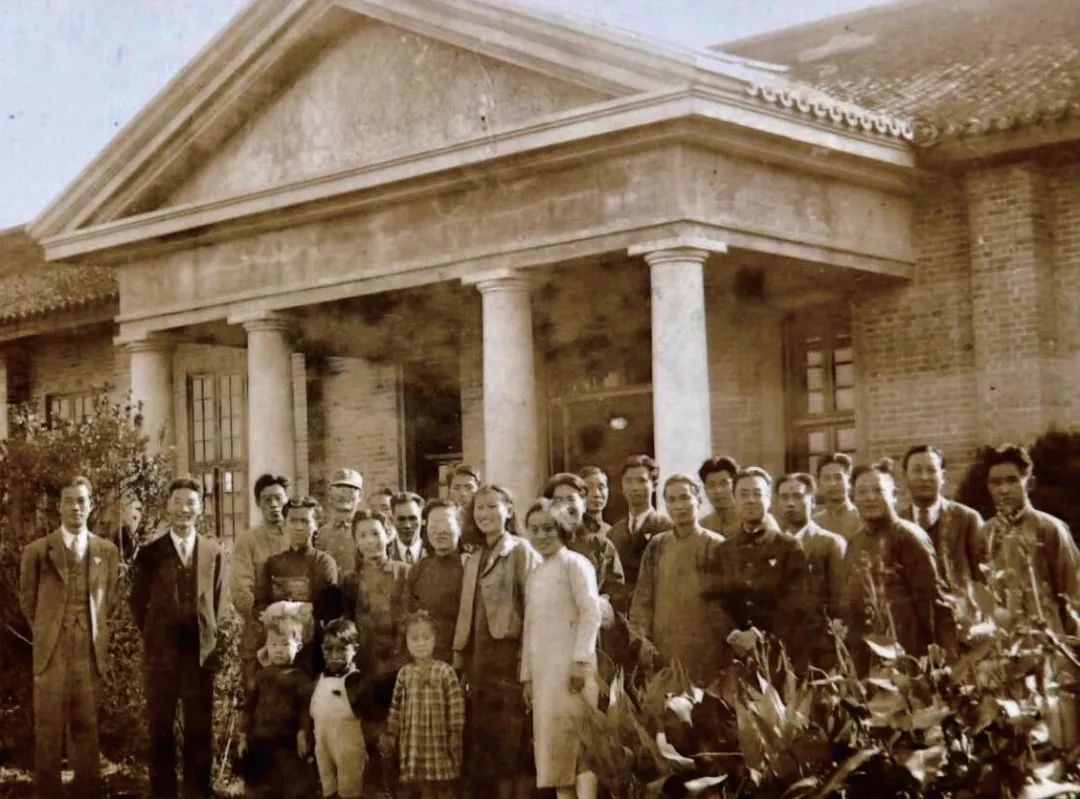 40年代,四川省立艺术专科学校教师在“工”字房前合影。