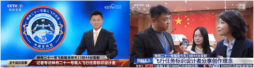 顾欣谈到:“发射的指令声响起后,火箭伴随着剧烈的轰鸣声腾空而起,现场也爆发出阵阵惊叹!由川美设计的神舟二十一号载人发射任务标识,终于伴随着三名航天员升上天空,我们期待这次航天任务圆满成功,英雄早日凯旋!”