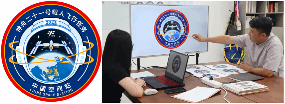 本次航天标识设计包含多个任务,由 党委常委、副院长段胜峰牵头,多名师生团队参与,历时一个月的集中创作与多轮打磨,产出并投稿80余件作品,共计4件作品入围网络投票环节,最终董恬同学与顾欣教授一同完成的设计作品被正式确定为神舟二十一号载人飞行任务标识。