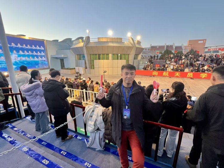 作为神舟二十一号载人飞行任务标识的设计者, 设计学院视觉传达设计系教授顾欣、2024级设计学研究生董恬是受邀到酒泉卫星发射中心发射场观摩神舟二十一号发射任务的。在现场,他们亲眼见证了张陆、武飞、张洪章三位航天员穿着印有自己设计标识的宇航服飞向太空。这也是继神舟十七号载人飞行任务标识之后,中国载人飞行任务标识第二次由来自重庆、来自 的设计师设计。