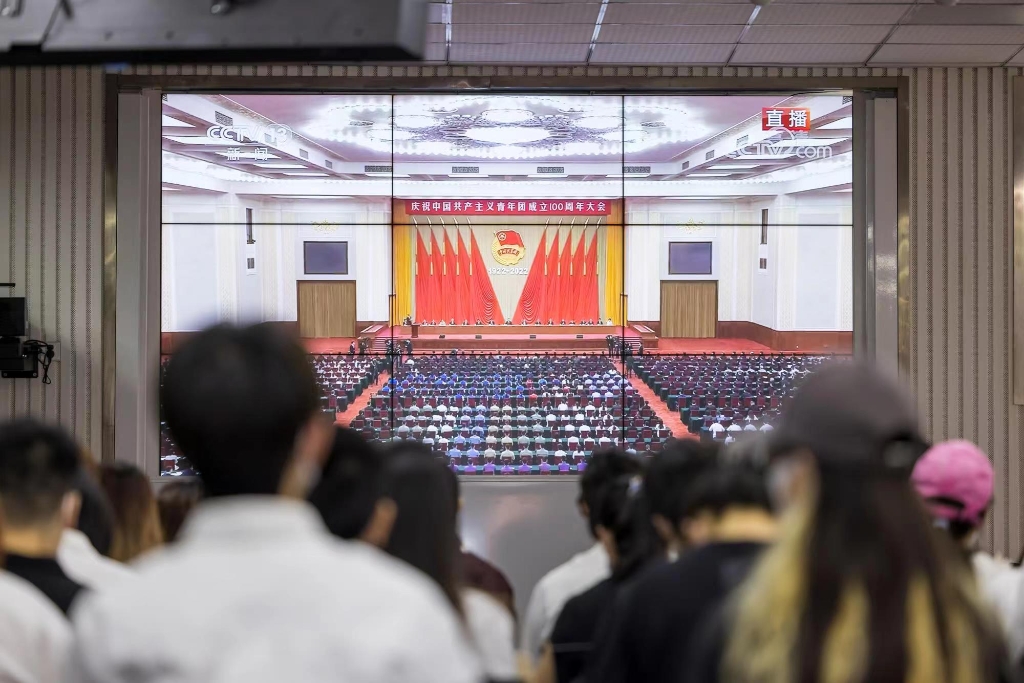 昨(10)日,庆祝中国共产主义青年团成立100周年大会在北京隆重举行,重庆多所高校师生通过电视或网络观看直播,反响热烈。