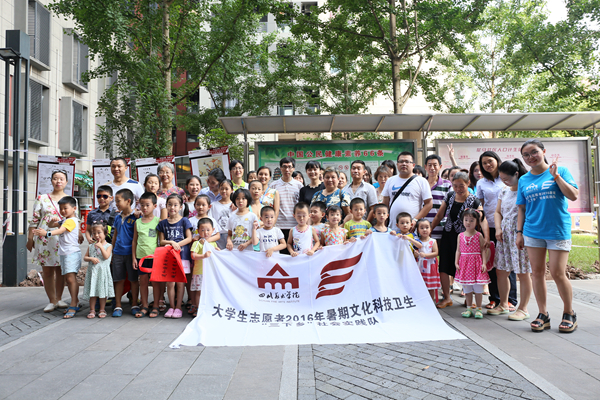 7月11日,影视动画学院社会实践宣讲团队来到城乡社区市民学校共建基地——沙坪坝区虎溪街道花马社区,正式启动2016年暑期“三下乡”社会实践活动。花马社区领导,影视动画学院党总支书记柏在华、辅导员老师、学生志愿者,社区小学生及家长等参加启动仪式。