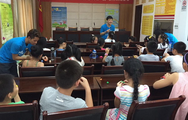 首先进行的是雕塑系学生最擅长的儿童彩泥教学。虽然天气炎热,但是小朋友学习的兴致很高。在雕塑系同学们的耐心指导下,小朋友们通过自己的双手,捏出了一个又一个充满创意的彩泥作品。每天同学们都会评选出一个“最佳创意奖”,并把自己的作品作为奖品送给获奖者,这更激发了小朋友们的创作兴趣。