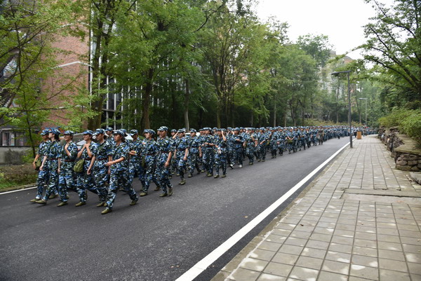 9月20日下午,2016级新生军训拉练在虎溪校区举行。校党委副书记、军训团政委左益,军训团副政委、保卫处及学生处负责人,承训部队负责人等到现场看望慰问了参训学生。