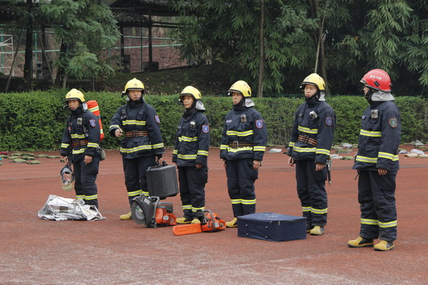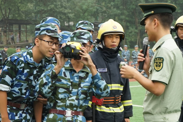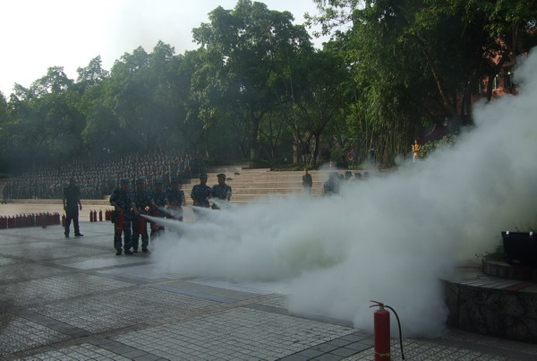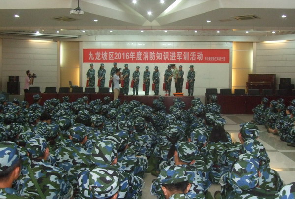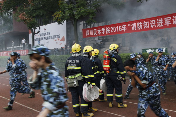 为进一步贯彻落实《重庆市教委、重庆警备区司令部、重庆市公安消防总队关于将消防知识技能纳入军训课程的通知》精神,我校与沙坪坝区公安消防支队、九龙坡区公安消防支队合作,分别于9月22日、9月25日在黄桷坪校区、虎溪校区组织开展了“消防知识技能进军训”活动。活动由学校武装部承办,1600余名新生全员参加了此次活动。