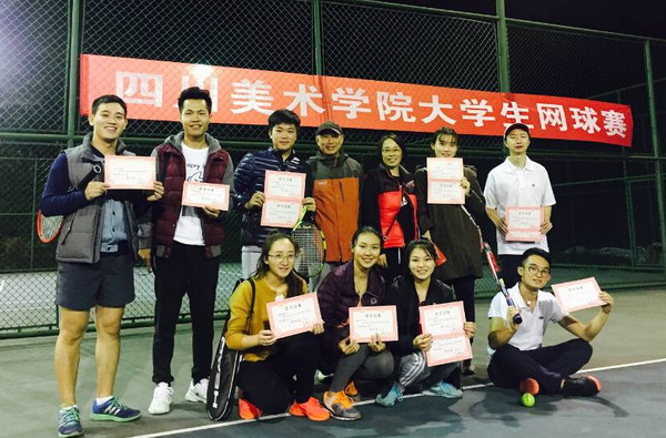 经过两天紧张、激烈的比赛, 2016年大学生网球比赛于11月11日圆满结束。雕塑系申子叶、设计艺术学院冉丽、版画系白金依、手工艺术学院冯唐菡分获女子单打第一名至第四名;设计艺术学院白东林、留学生寺江圭一朗、设计艺术学院李亮、建筑艺术系谭鑫宪分获男子单打第一名至第四名;混合双打前四名分别是:雕塑系申子叶和建筑艺术系谭鑫宪,设计艺术学院於稼田和李亮,设计艺术学院冉丽和手工艺术学院罗傲,手工艺术学院冯唐菡和设计艺术学院韦敬馨获得。