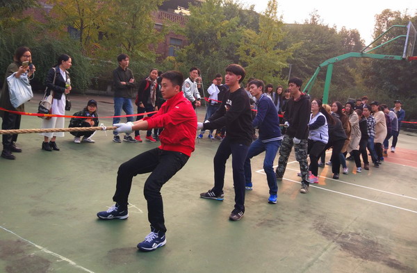11月16日下午的拔河比赛采用淘汰制与循环制相结合的形式展开。参加拔河比赛的19支队伍精神饱满,比赛氛围热烈。最后,凭借丰富的比赛经验和良好的班级凝聚力,2014级动漫产品设计班收获了拔河比赛冠军,实现“三连冠”,为其他班级做出了良好的示范作用。