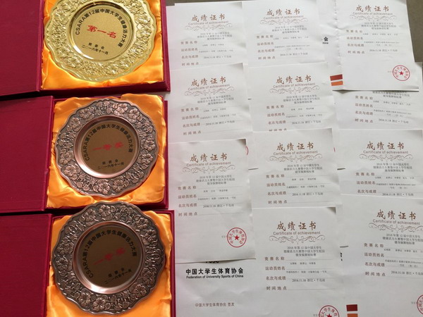 今年,我校首次组织健身街舞代表队参加该比赛,由公共课教学部赵琼老师担任领队,陈梦洁、申梦倩、宋琬秋、汪洋、夏凡、刑袁星曜、陈爽、雷雨等8名运动员组队,参加了此次大赛校园健身街舞的三项赛事。我校街舞队的同学们通过为期两个月的艰苦训练,积极备战,在比赛中以饱满的热情、精湛的舞艺、良好的精神面貌,从全国43个大学中脱颖而出,征服了观众与裁判,一举夺得女子团体街舞规定套路第一名、女子团体自选套路一等奖、男子团体自选套路一等奖的好成绩。