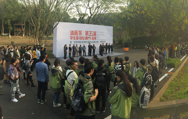 黄政书记在讲话中谈到“基础的厚度决定专业的高度”。他肯定了油画系对基础教学工作的投入,以及在实践中不断探讨学生基础的维度和深度,还对学生们全面提升综合素质提出了深切期望。最后黄政宣布展览开幕。