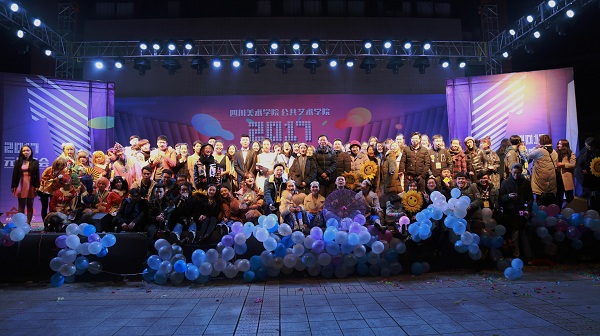 12月22日晚,公共艺术学院“青春飞扬·梦想启航”2017年元旦晚会在我校黄桷坪校区综合楼广场举行,公共艺术学院师生一起观看2017年元旦晚会。