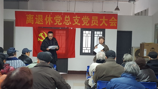 12月27日下午,离退休党总支在老同志活动中心召开党员大会。党总支副书记高兵主持会议,近50名离退休老党员参加会议。