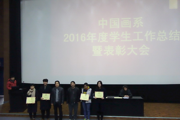 会议宣布了关于表彰优秀班级集体和先进个人的决定,并表彰了2016年度中国画系优秀班集体和三好学生、优秀学生干部、学风建设先进个人、文艺活动先进个人。