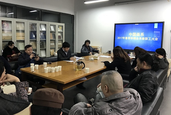 2月18日下午,中国画系召开新学期全系教职工大会,传达学习学校工作要点,检查开学情况,布置新学期工作。中国画系党政领导和全体教职工参加会议,会议由系党总支负责人王士臣主持。