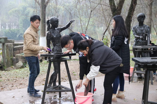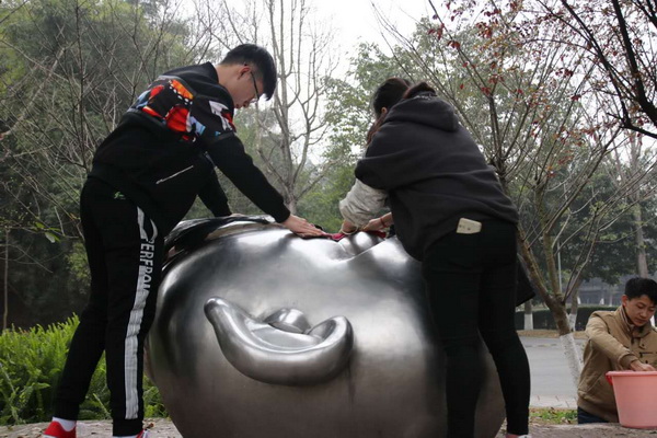 3月5日是第54个学雷锋日,雕塑系志愿者开展了“我为校园雕塑换新颜”的活动。当天,一共7名志愿者参加到这项活动中,他们用自己的双手,将校园里的雕塑擦洗干净。