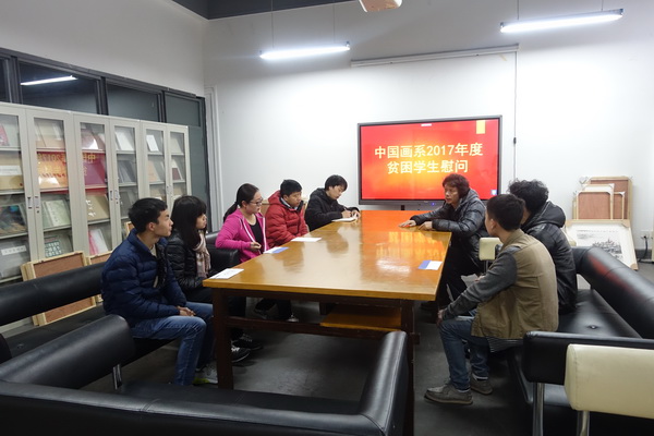 3月16日,中国画系召开贫困学子慰问工作。在与学生交谈的同时,详细了解学生家境和实际困难,并介绍了中国画系的资助、帮扶政策,以及向学生承诺,假若学习和生活遇到困难,系上一定会想办法进行解决。