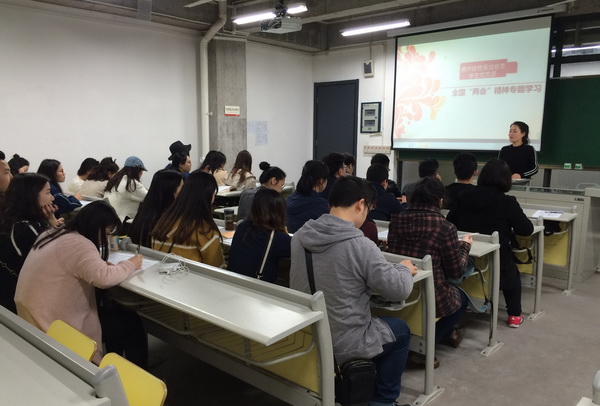 会议开始,茹婧斐首先传达了 2017年2-3月政治理论学习重点内容。接着,对十二届全国人大五次会议和全国政协十二届五次会议召开的基本概况进行介绍。随后,带领全体学生党员对2017年“两会”精神进行了深入学习和探讨。各位学生党员在“两会”期间认真收听、收看“两会”相关报道,积极进行自学、开展讨论。学生党员纷纷表示,作为一个大学生党员,不仅应该关注“两会”,更应该时刻关心时局。在学好专业知识的同时也有责任和义务参与到“两会”精神的学习当中,在思想、本领、作风上找差距,不断提高自身素质。