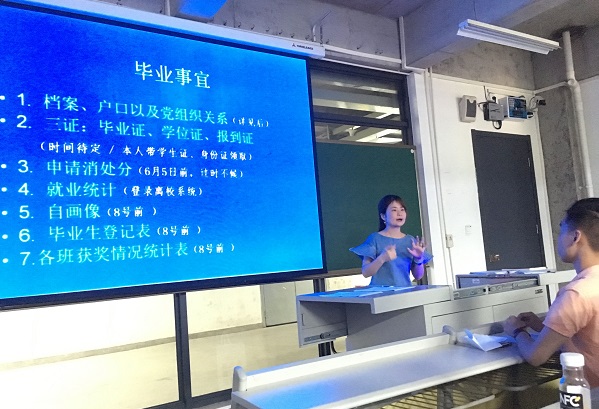 6月21日至6月22日,美术教育系在综合楼多媒体教室分专业召开了毕业生教育会。毕业班辅导员就毕业生关心的一系列事宜问题进行了详细讲解,涉及到档案、户籍、党团关系接转、贷款手续处理、就业统计、离校手续办理等与毕业生密切相关的问题,且着重强调在现阶段依然严格遵守校纪校规,做到文明离校、安全离校。