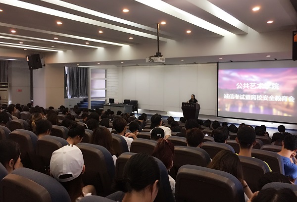 为了建设良好学风考风、增强在校学生安全意识。2017年6月29日公共艺术学院五名辅导员分别组织2015级、2016级全体学生在黄桷坪校区学术报告厅召开了诚信考试暨离校安全教育会。