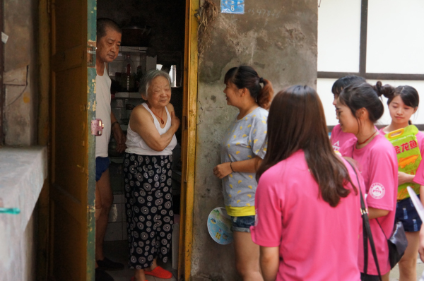 最后,设计艺术学院志愿队走进金碧社区居民家中,为老人们送温暖。志愿者们探访了五户老人,他们热情地同志愿者交流年轻时候的故事和做人的道理,让志愿者受益颇深。