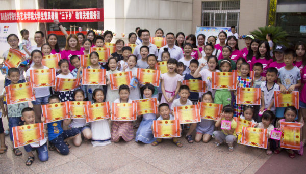 活动最后,由垫江县团委李书记和公共艺术学院党总支副书记郭小兵共同为教学活动中表现优异的小朋友颁发奖品和奖状。同时,公共艺术学院与垫江县团委达成初步合作共识,为进一步加强合作,形成长期合作机制,计划在垫江县成立 社会实践基地。至此,本次大学生党员暑期“三下乡”教育关爱服务活动圆满结束。